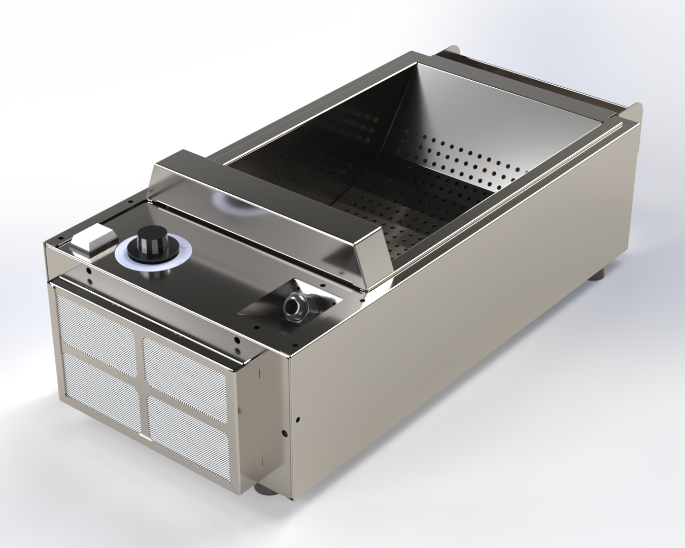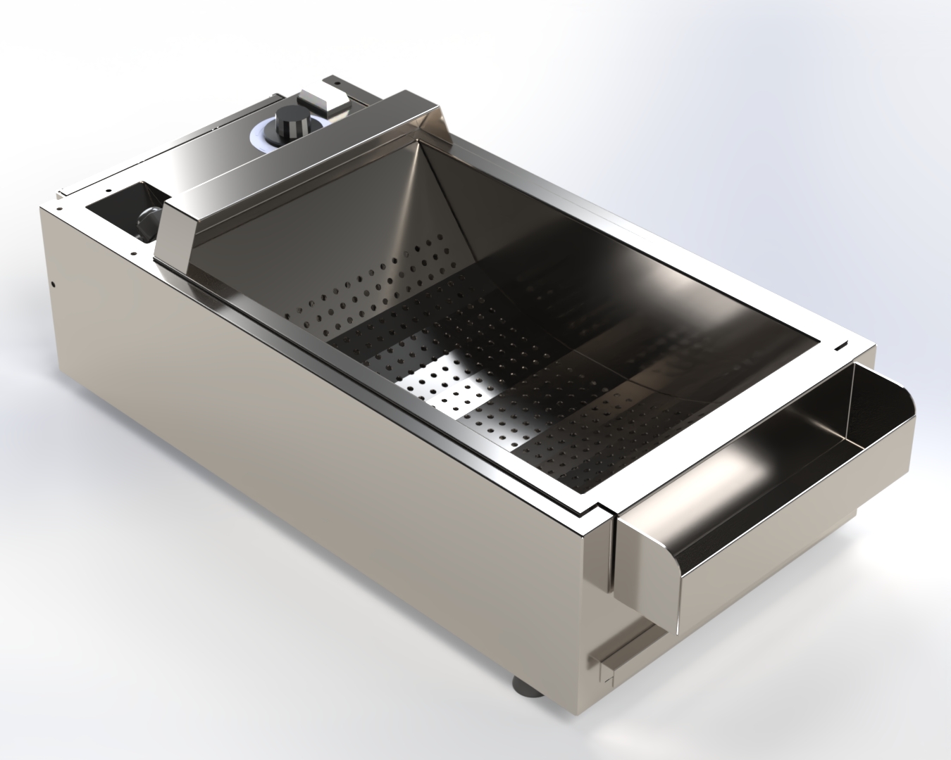 Seu layout também facilita na limpeza, pois possui escorredor de óleo e sal em aço inox e gaveta coletora para retirada destes resíduos