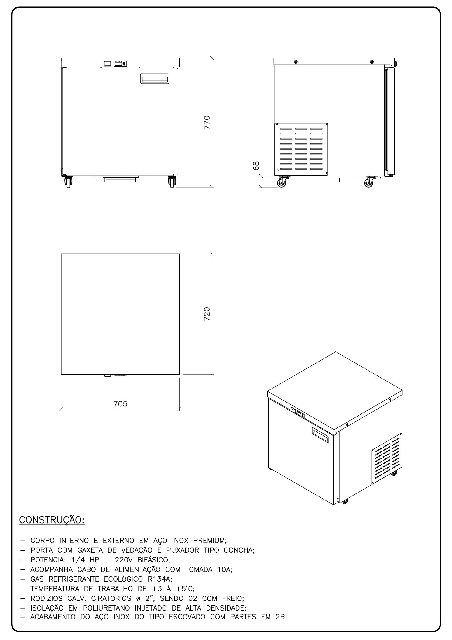 • Geladeira Industrial com corpo interno e externo em aço inoxidável;